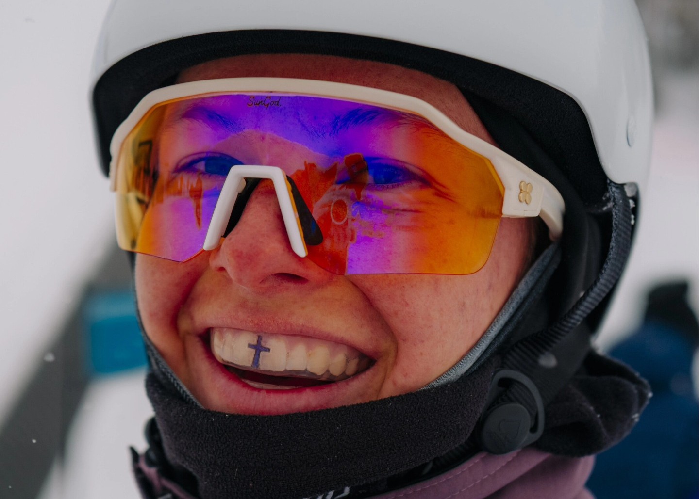 Ich hatte tatsächlich ein kleines Kreuz auf meinem Helm. Allerdings musste ich das für Olympia entfernen. Politische und religiöse Statements sind bei Olympia verboten. Ich habe dann einfach ein kleines Kreuz auf meinem Mundschutz getragen. Aber meinen Glauben kann ich ja nicht nur mit solchen Symbolen oder mit Worten vor der Kamera bezeugen.