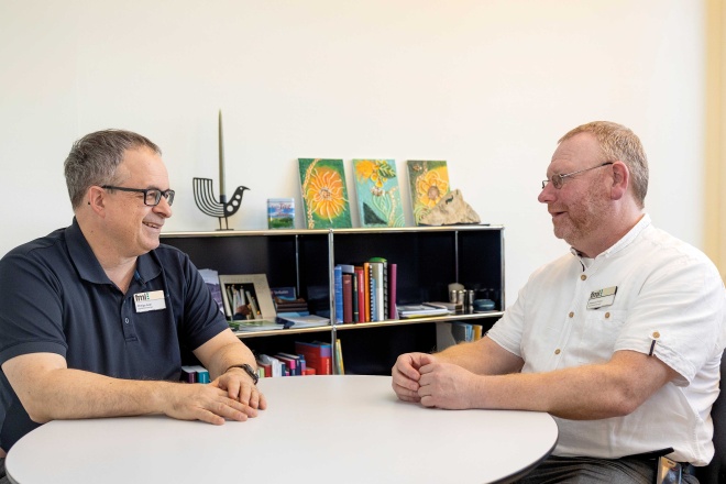 Der katholische Seelsorger mit theologischem und pflegerischem Hintergrund arbeitet seit 2019 bei der Spitäler fmi AG. Sein Kollege, der reformierte Theologe Philipp Aebi, stiess vor eineinhalb Jahren dazu, nachdem er elf Jahre in der gleichen Funktion im Luzerner Kantonsspital tätig gewesen war. Die beiden arbeiten Hand in Hand. Ihr konfessioneller Hintergrund spielt eine stark untergeordnete Rolle – sowohl für sie persönlich als auch für ihre Klienten. «Wir versuchen weltanschaulich sensibilisiert im Spital unterwegs zu sein», erklärt Philipp Aebi. So gebe es Anliegen, für die eine Begleitung mit einem spezifischen religiösen Hintergrund zwingend sei. Dafür könnten sie Personen aus anderen Religionen beiziehen. Aber das sei die Ausnahme. «Manchmal werden wir – mehr aus Neugierde – nach unserer Konfession gefragt. In der Regel sind die Menschen primär dankbar, dass jemand für sie da ist», ergänzt Helmut Finkel.