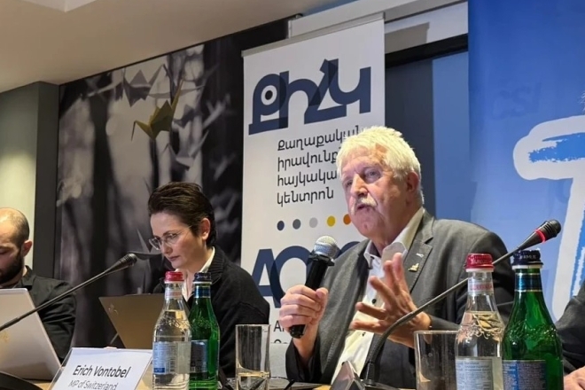 Erich Vontobel, Nationalrat (EDU, ZH) erinnerte daran, dass eine erfolgreiche Motion im Parlament die Schweizer Regierung verpflichtet, ein Friedensforum zwischen Aserbaidschan und Vertriebenen aus Bergkarabach zu ermöglichen, wo über deren sichere Rückkehr diskutiert wird.
