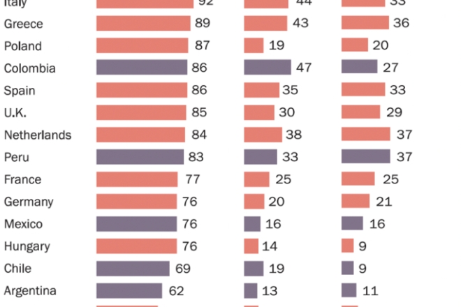Die Forschung hebt auch bedeutende religiöse Veränderungen hervor: In jedem untersuchten Land gab mindestens jeder fünfte Erwachsene an, katholisch erzogen worden zu sein, sich aber nicht mehr mit der Kirche zu identifizieren.